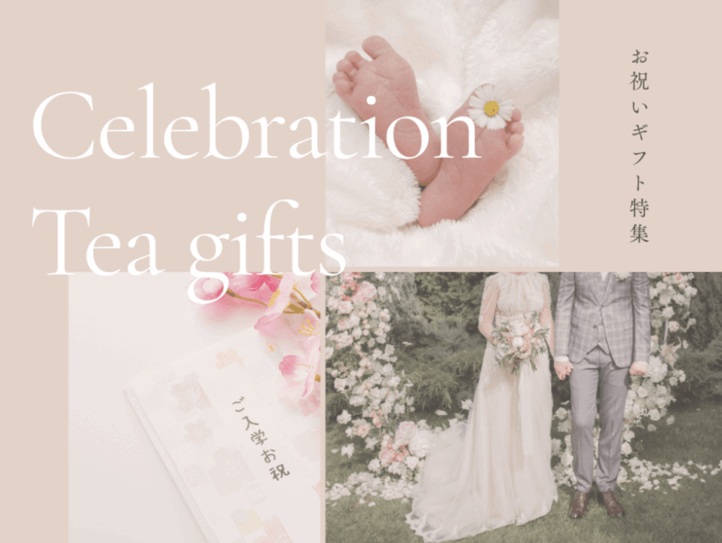 お祝い/慶事ギフトとして、お茶は縁起の良いものとされ婚姻のシンボルとみなされてきました。 お茶の木は生命力の強い常緑樹で、樹齢百年の木でも芽を摘んでもまた芽が出る事から「お芽でたい」と言われています。また、一般的な飲み物なので幅広い世代に好まれ、軽く日持ちすることから様々な贈り物に利用されています。