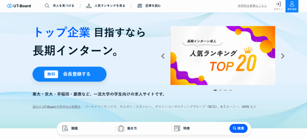 UT-Boardは、ハイクラス大学生に向けた長期求人インターンサイトです。