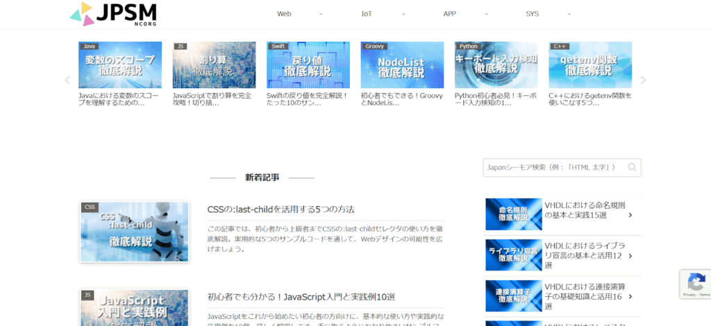 Japanシーモアは、主にプログラミングに関する最新かつ正確な情報を日々提供する技術系情報サイトです。初心者から中・上級者まで幅広い層を対象に、HTML、CSS、JavaScript、Python、PHPなど多様な言語や技術のチュートリアル、サンプルコード、活用例を網羅しています。