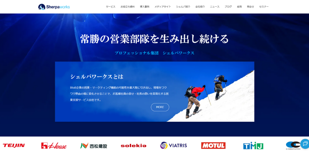 シェルパワークス株式会社は、「日本の営業を元気にする」をミッションに、東京都千代田区を拠点に営業力強化に特化したコンサルティングサービスを提供しています。さらに、営業に関する役立つ情報を発信するオウンドメディア「Sherpa ~営業を元気にするメディア~」も運営しており、営業の最新トレンドや実践的なノウハウを学ぶことができます。