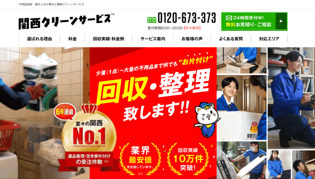 関西クリーンサービス(運営:A-LIFE株式会社)は、奈良を中心に大阪・京都の全域で不用品回収や遺品整理など、住まいの整理サービスを提供しています。遺品整理においては受注件数が6年連続で関西No.1を達成。(2019年~2024年・東京商工リサーチによる「遺品整理業調査」において)